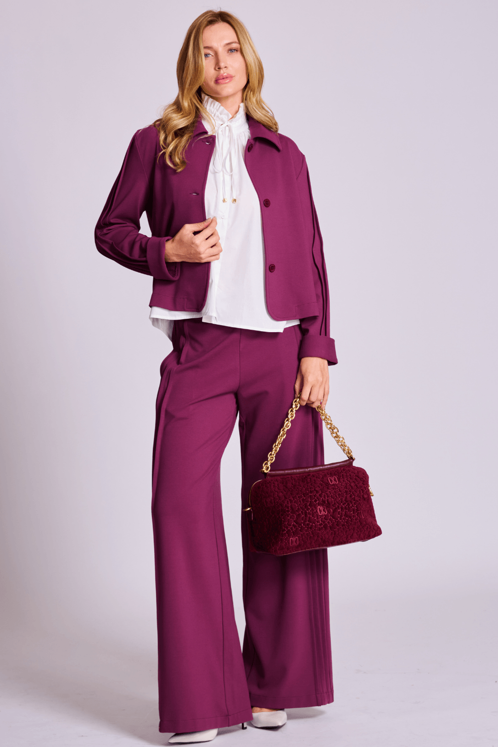 CALÇA ALFAIATARIA WIDE LEG NERVURAS LATERAIS BURGUNDY