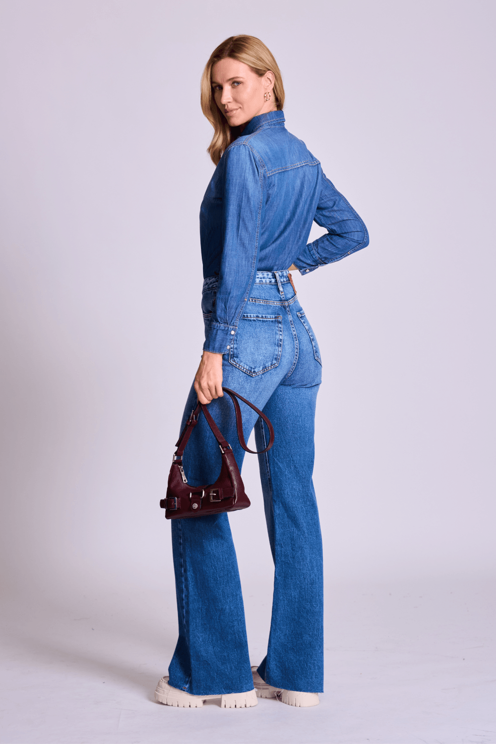 A calça jeans wide leg feminina é a peça-chave para um visual moderno, elegante e imponente. Com modelagem ampla e cintura alta, ela alonga a silhueta e valoriza o corpo com sofisticação.
