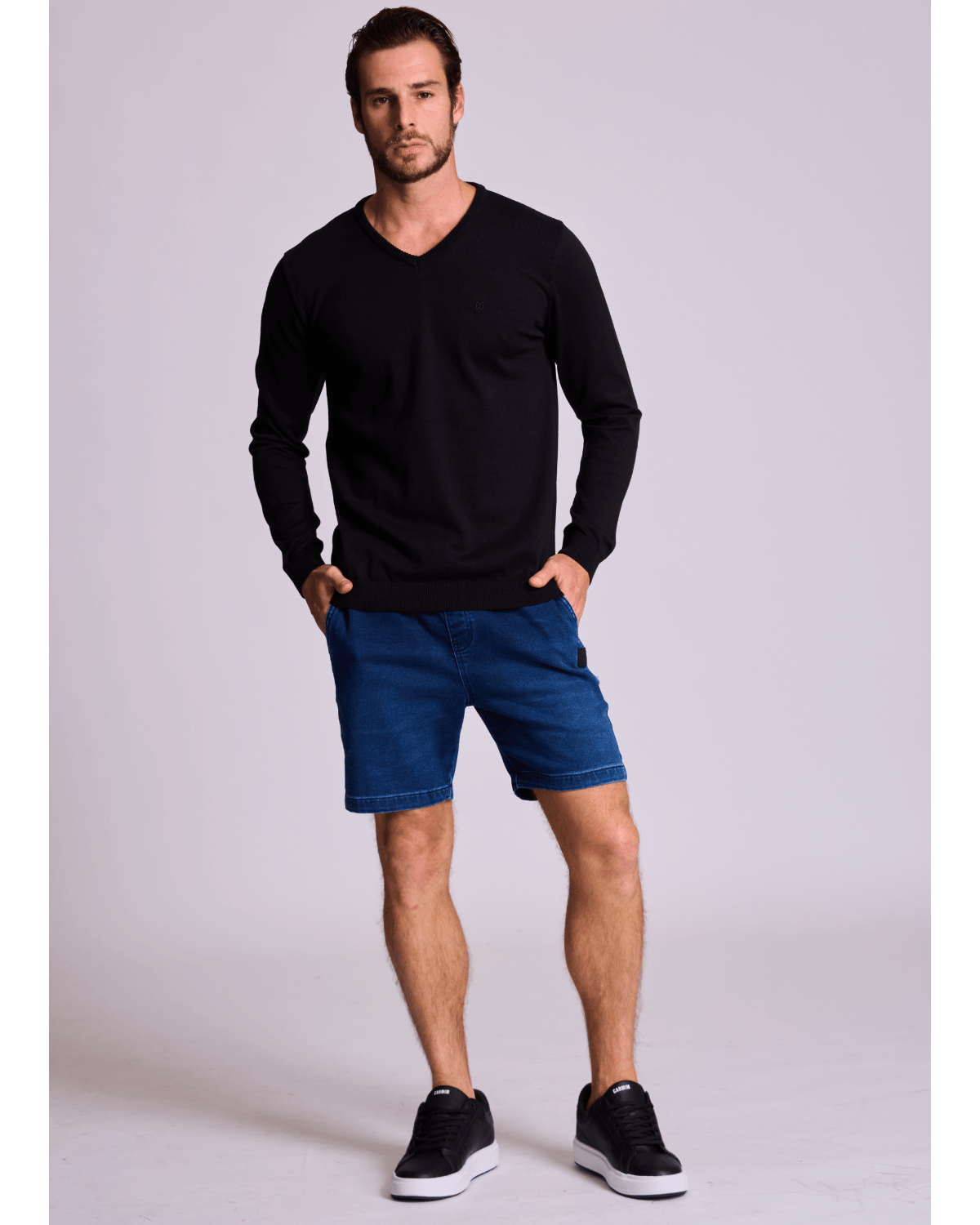 A bermuda jeans masculina Carmim é a peça ideal para composições casuais com estilo e conforto. Confeccionada em denim de alta qualidade, apresenta lavagem azul médio com acabamento moderno e versátil.