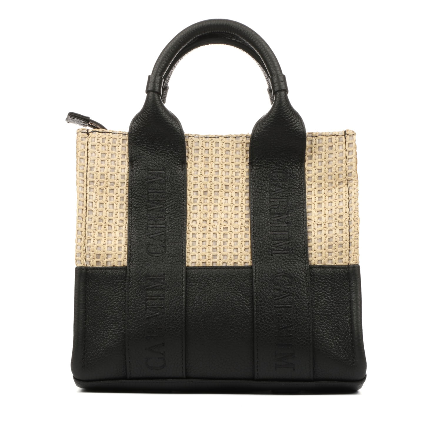 Bolsa com mistura de palha e couro Floater. Possui alça de mão e alça longa removível.