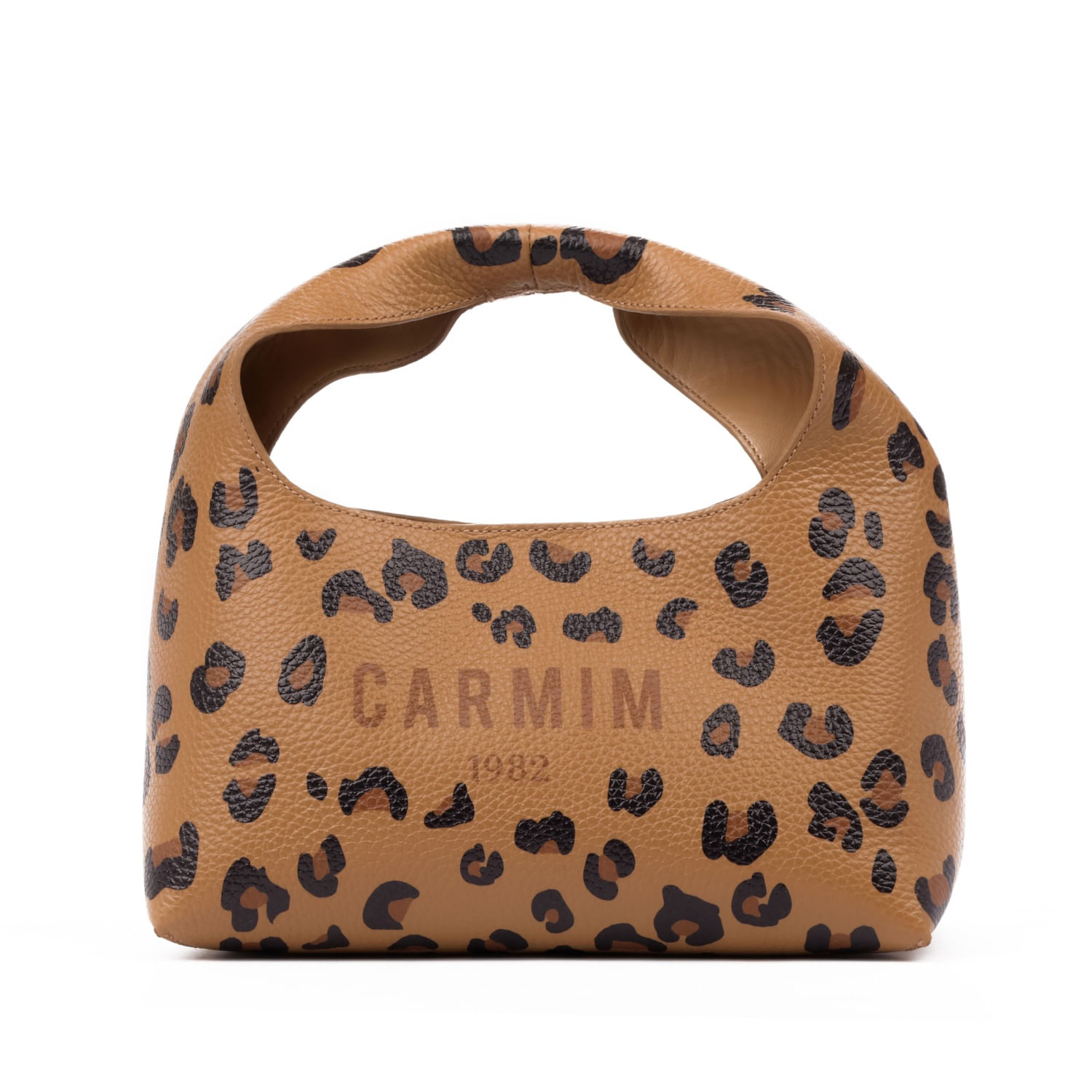 Bolsa em floater com versão em vermelho, preto e estampa de onça. Possui uma mini bolsa interna de lona com puxador personalizado Carmim.