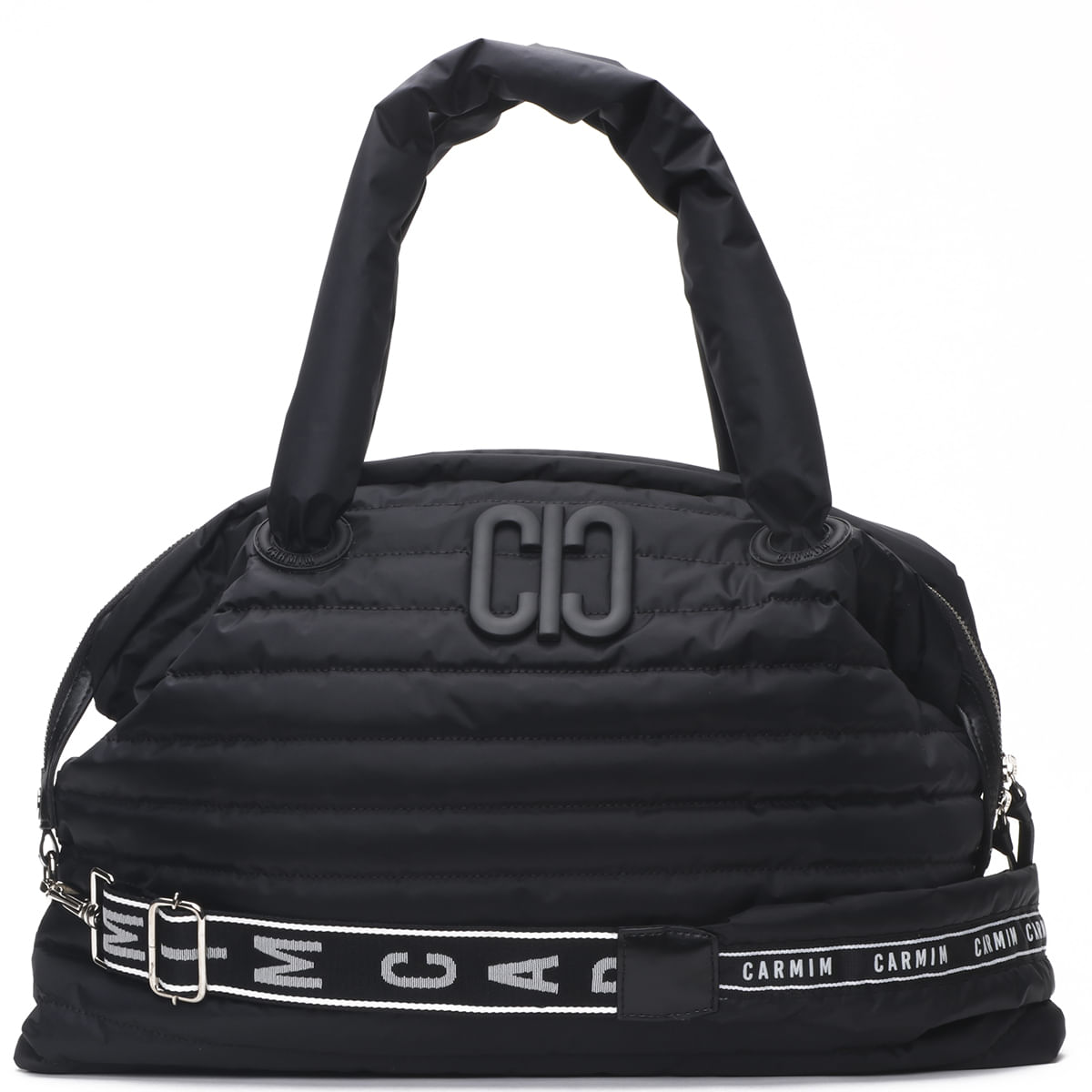 Detalhe para o porta alça emborrachado com a assinatura Carmim;