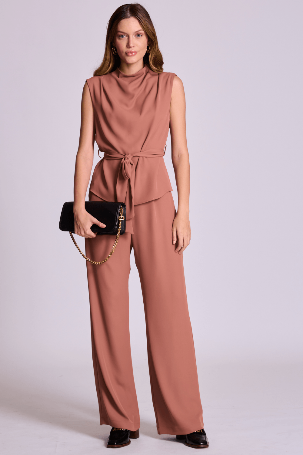Sofisticada e confortável, a calça de alfaiataria na cor terracota é a peça ideal para composições elegantes e contemporâneas.