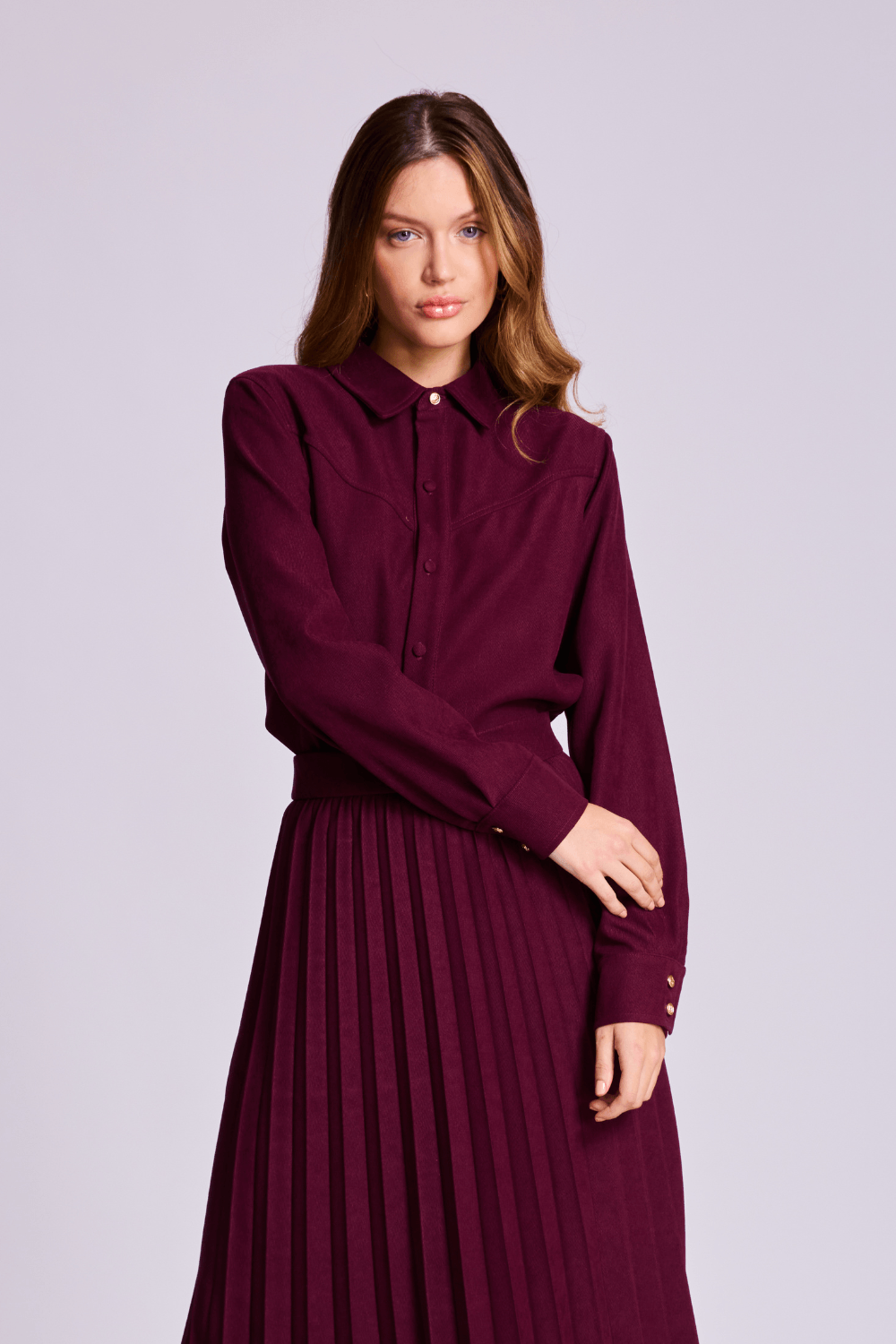 A camisa feminina em suede vinho é uma peça sofisticada que combina elegância e conforto em um design atemporal. Confeccionada em tecido suede de toque macio e acabamento aveludado, proporciona um caimento elegante e confortável.