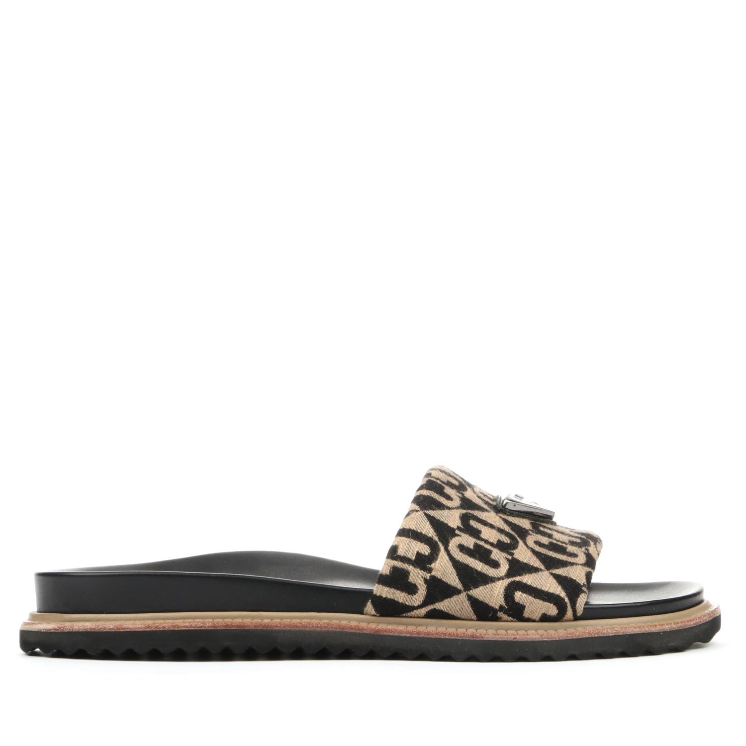 Rasteira estilo papete com design exclusivo e monograma em tear jacquard, que une sofisticação e identidade.