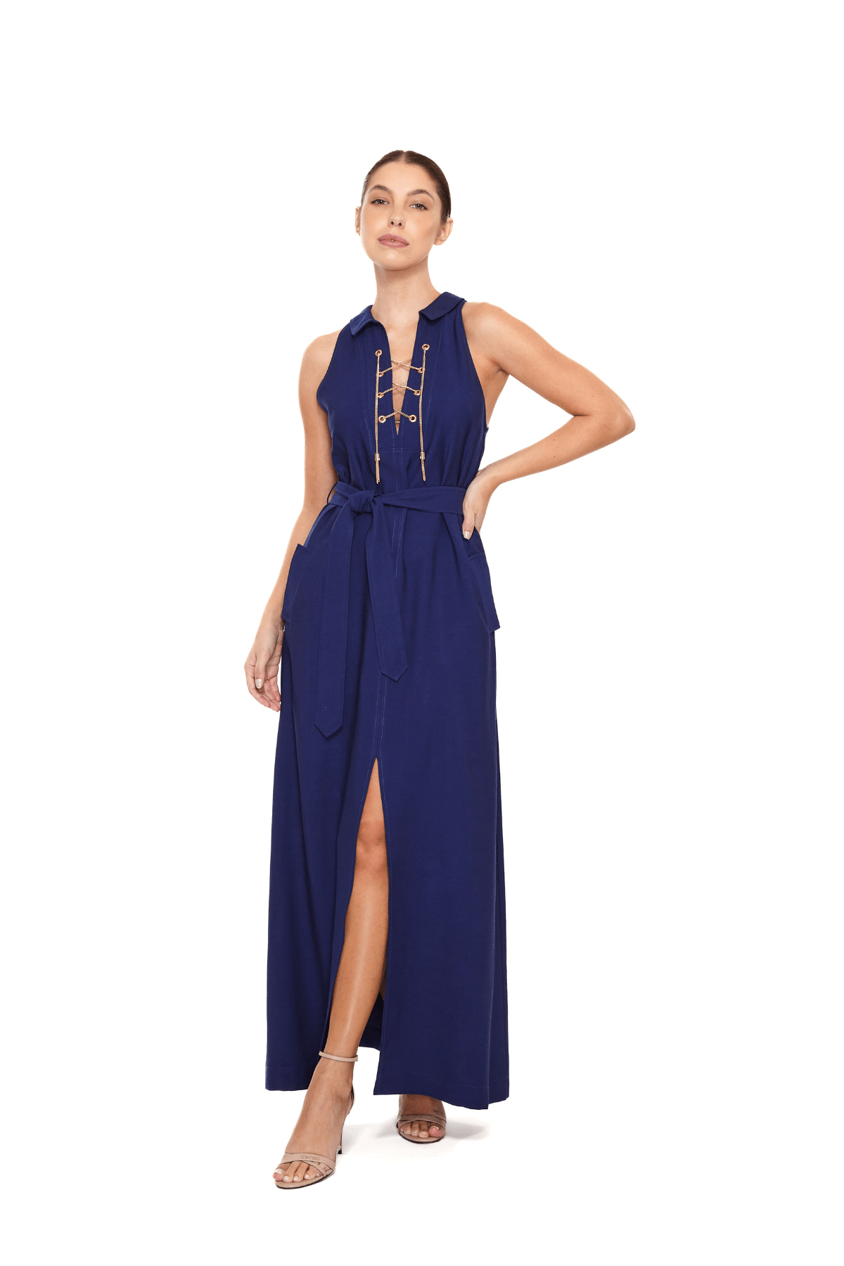 Vestido longo com ilhóses, que une elegância e modernidade em uma peça versátil. Confeccionado em tecido leve e confortável, possui caimento fluido que valoriza a silhueta. Os detalhes em ilhóses trazem um toque sofisticado e atual, permitindo ajuste sutil e melhor vestibilidade. Ideal para compor looks do dia à noite, combinando facilmente com sandálias, rasteiras ou salto.